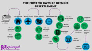 The “core services” that need to be provided within the first 90 days of refugees’ arrival in the U.S. are set by the federal government as requirements for its funding of the Reception and Placement program.